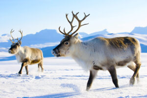 Reindeers in natural environment, Tromso region, Northern Norway.